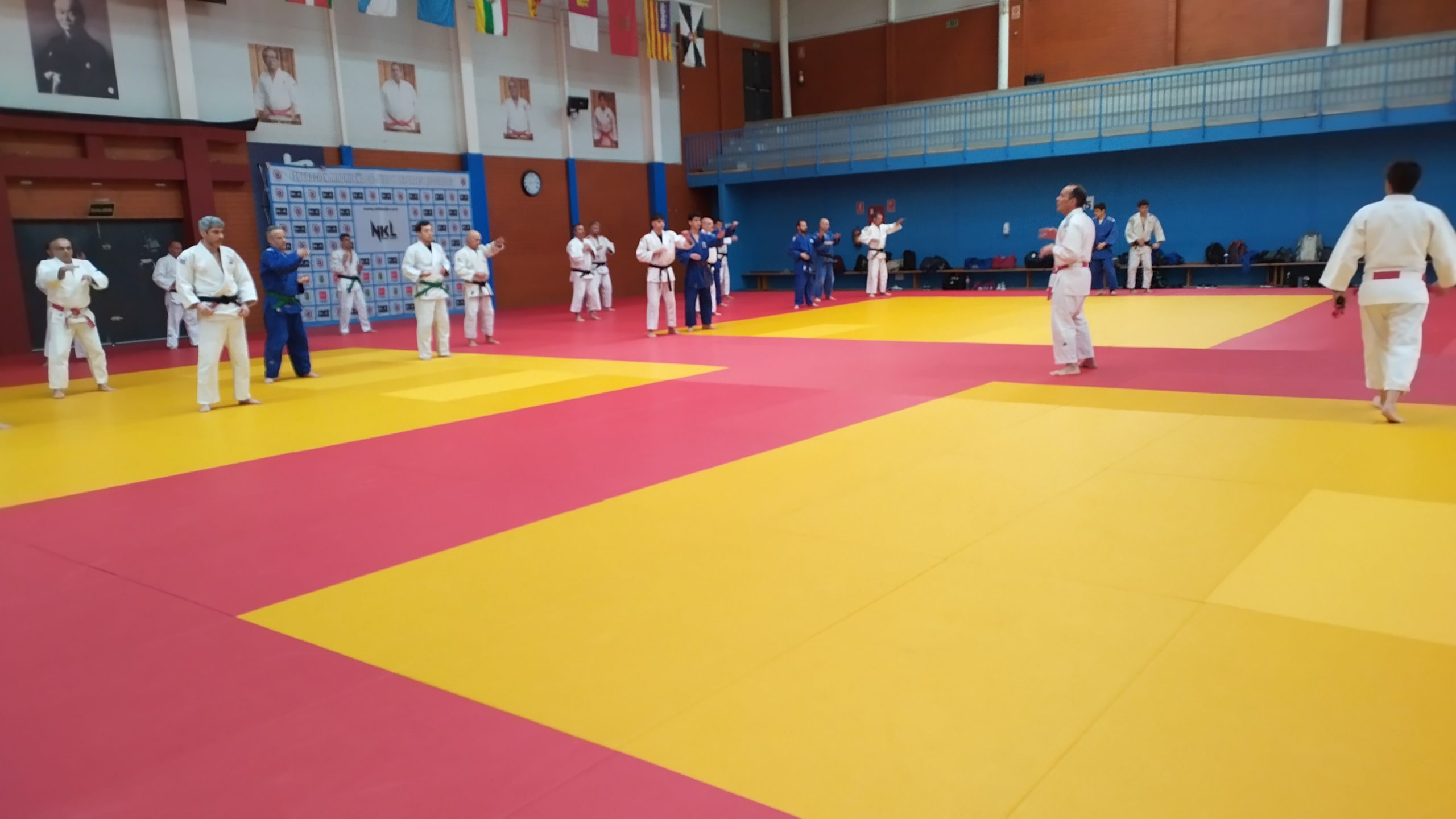 En el grupo recreativo, todos practicaron durante 30 mn sus katas preferidos, unos para examen y algunos para la Copa de España de katas, que se celebró por la tarde. Tuve la ayuda de mis alumnos y maestros, S.Moreno, J.García y J. Linger , quienes realizaron y demostraron las técnicas del Go no sen no kata, este kata poco conocido por la mayoría es un kata muy interesante ya que hace reflexionar al alumno sobre las posibilidades de defenderse de los ataques de una gran variedad de técnicas.